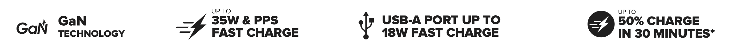 • Galium Nitride (GaN) transistors provides high output fast-charging while providing a solution with the smallest footprint possible.