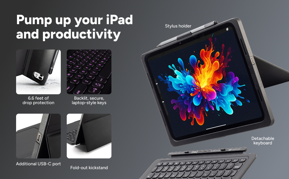 - Industry-leading Typing Experience: The new and improved indented keys are so comfortable and efficient, you’ll forget you're working on an iPad.