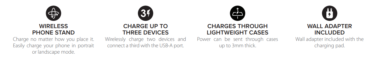 - The wireless charging stand+ is compatible with Qi-enabled phones.